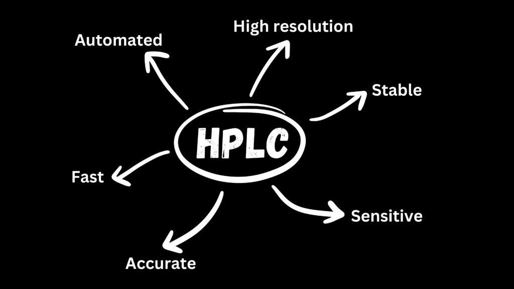 High performance liquid chromatography (HPLC) is basically a highly improved form of column liquid chromatography to provide high accuracy and high sensitivity analyses to find out purity and impurity for the non-volatile substance. Instead of a solvent being allowed to drip through a column under gravity, it is forced through under high pressures of up to 400 atmospheres. That makes it much faster.
